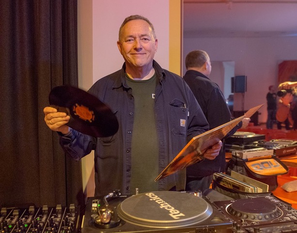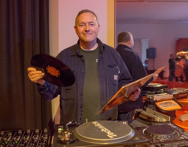 ein koffer voller platten steht bereit. „follow me“ von amanda lear darf nicht fehlen.