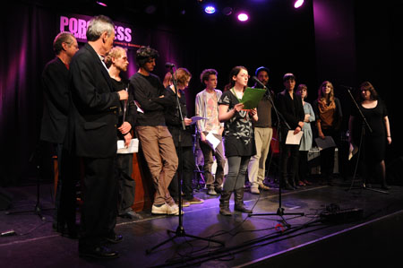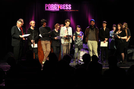 1. april 2011: julian schutting stellt mit seinen studentinnen und studenten klassenergebnisse im rahmen des festivals "wortspiele" vor. fotos >>