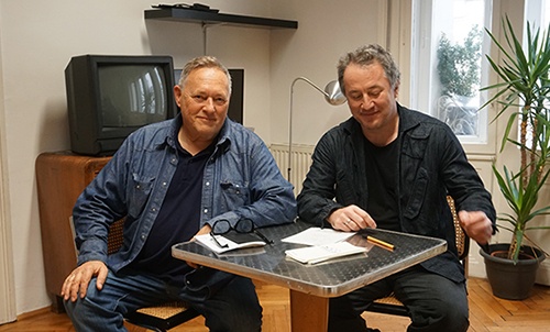 thomas meinecke und jürgen berlakovich bei der podcast-aufnahme in der sfd wien