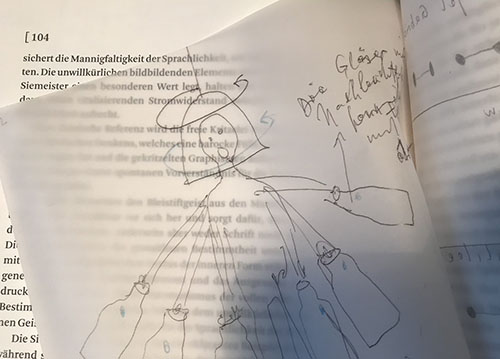 "worten wolken stimmen klingen sprechen stücken“ von curd duca & stefanie wolff und "im vorzimmer der notationen“, hörstücke nach einem buchobjekt von emil siemeister & ferenc jadi von grazer und wiener studierenden.