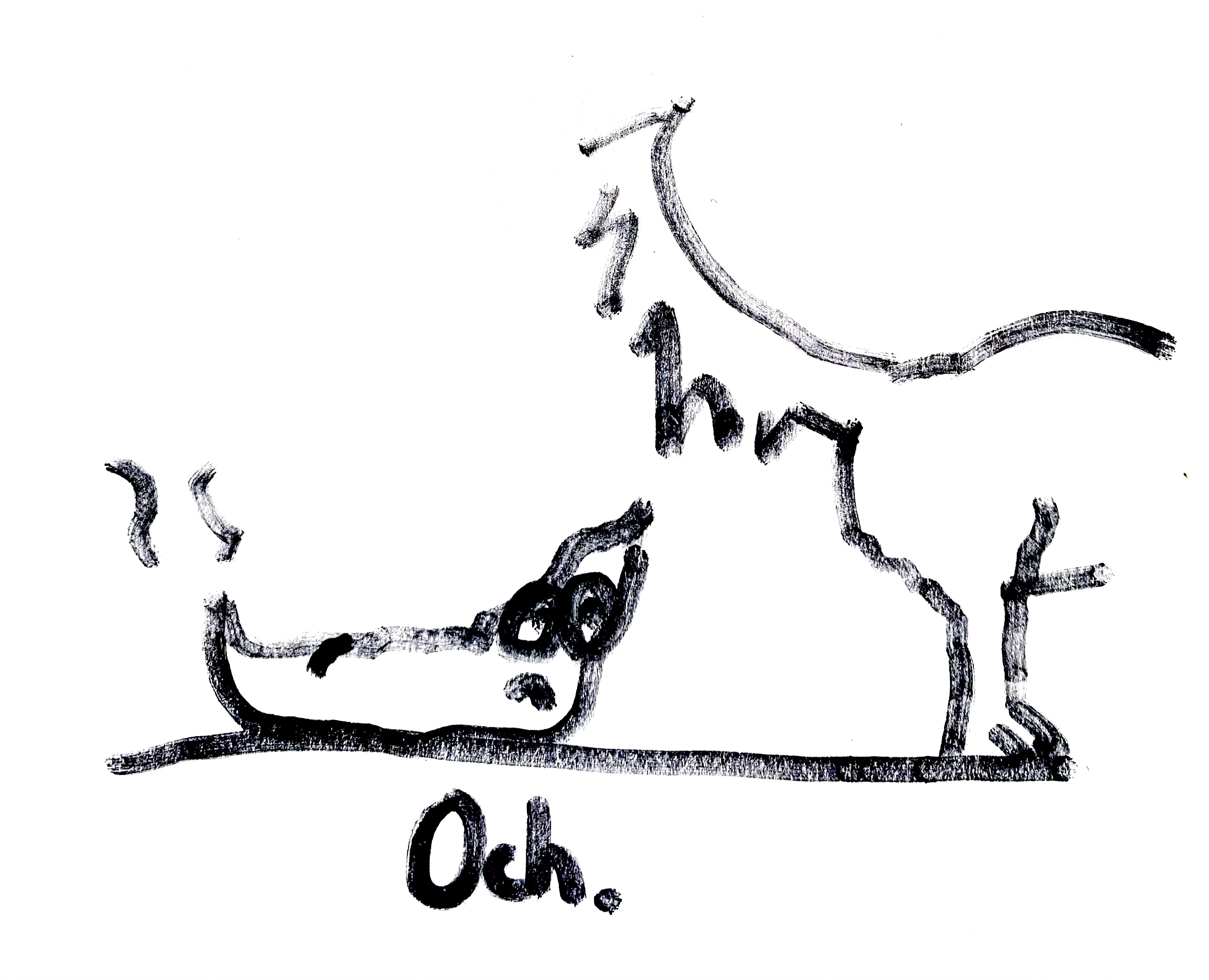 danke für den beitrag. ich finde "hund, hund immer nur hund" würde als komische textebene für diesen cartoon völlig ausreichen. man könnte es statt dem och darunter schreiben.