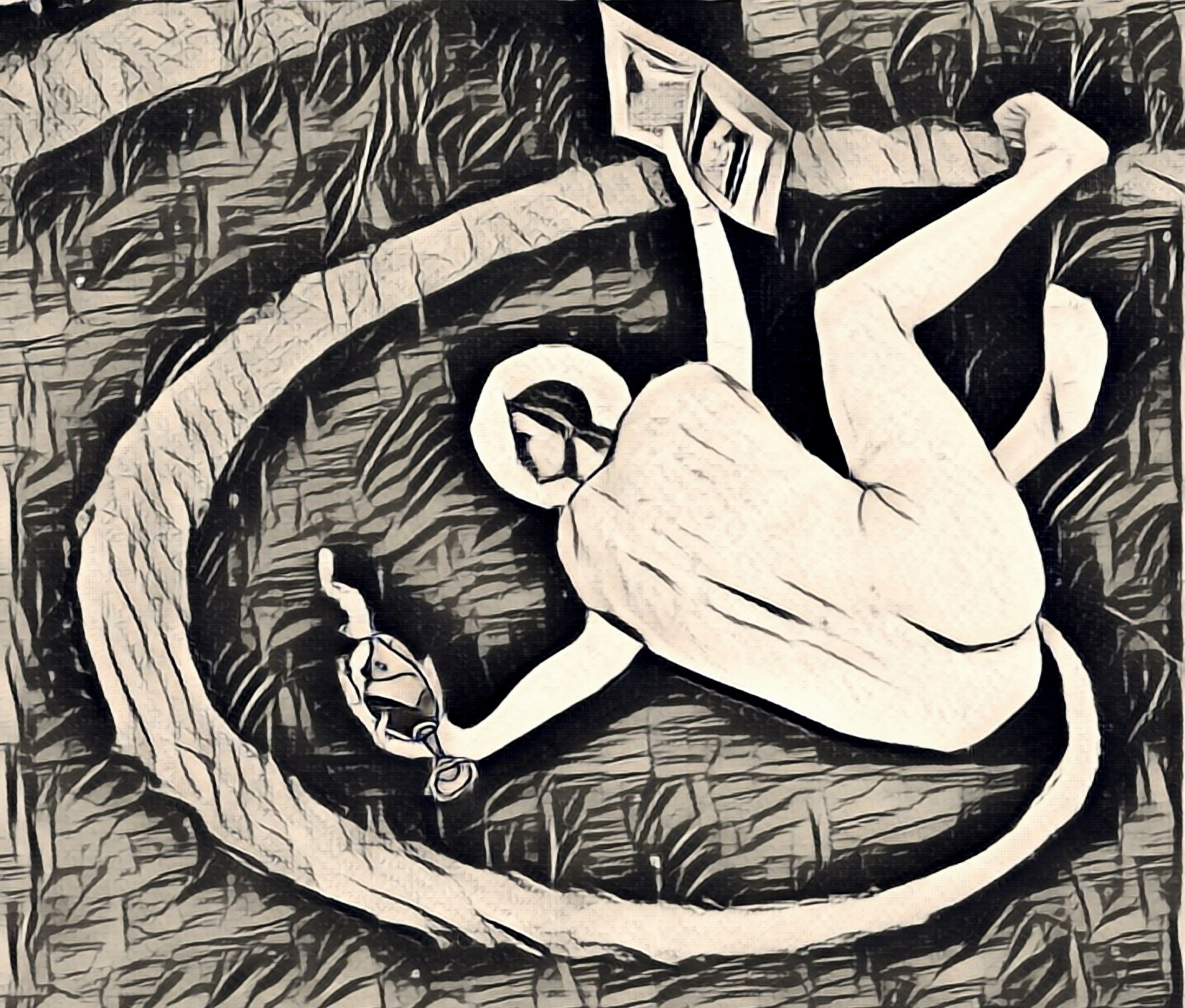 interessante zeichnung, fällt aber eher aus der aufgabenstellung cartoon. ist da ein heiligenschein, eine nabelschnur? könnte man vielleicht eine textebene dazu kreieren?