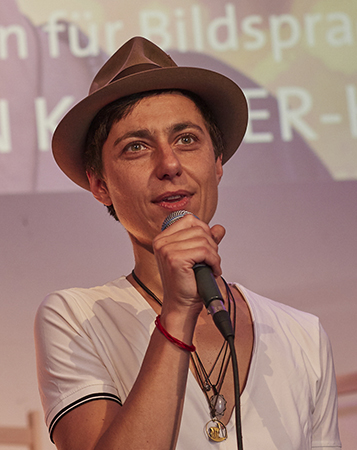 *1977 graz, lebt als künstlerin in wien. vor dem bildungshintergrund der visuellen künste arbeitet sie mit den mitteln der stimme und sprache, der sozialen skulptur (gespräche/ interviews) wie auch der installation und objektkunst. die künstlerin entwickelte ein eigenes coaching-format (rote suppe) und ihr salon für bildsprachlichkeit spannt sich über ihre transdisziplinäre praxis. weiters gewann sie u.a. den theodor körner preis (2010) und den sonderpreis der schule für dichtung beim track 5'-kurzhörspielwettbewerb von ö1 und sfd (2025) (für "da pugl peppi und seine hawara" >> info).