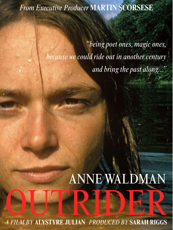 “Singular and personal vision—visual sentience unlike any film I can recall. Outrider is a shared and sharing voice of so many voices and so many confluences—the galaxy of Anne Waldman, poetry as devotion, and life.”