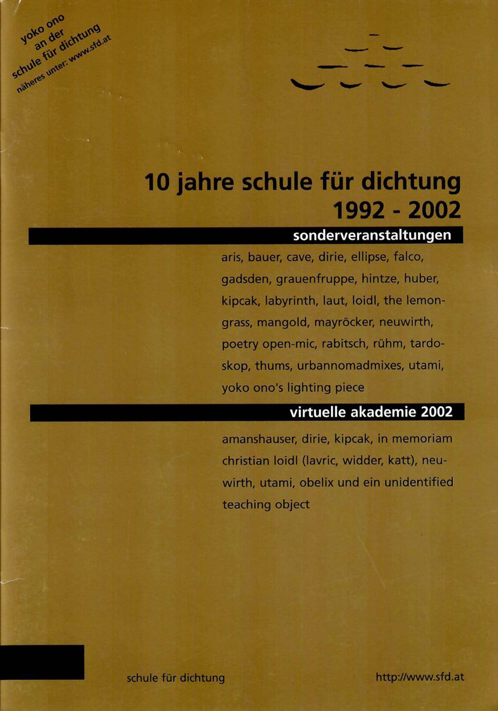 10 jahre schule für dichtung heisst: 10 jahre auseinandersetzung mit den folgenreichsten umbrüchen/veränderungen der sprachkunst seit sappho/seit plato.